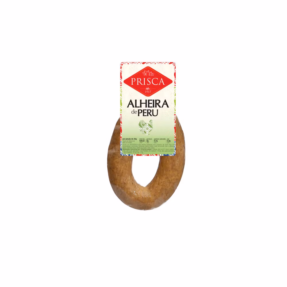Alheira de Peru är en traditionell portugisisk korv gjord på kalkonkött, bröd och aromatiska kryddor. Den har en mild och fyllig smak samt en mjuk och saftig konsistens, vilket gör den till ett lättare men lika smakrikt alternativ till klassisk Alheira.